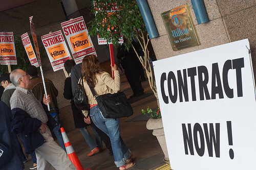 Unite Here local 232 hotel workers strike in San Francisco. Photo cred: Steve Rhodes