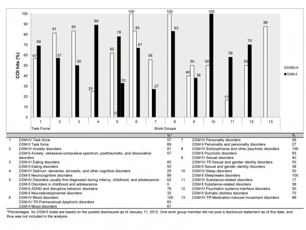 Financial conflicts of interest in DSM-IV and DSM-5 panelists. Courtesy of the PLoS Journal of Medicine.