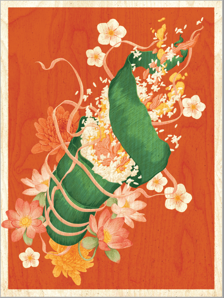 “Now she’s started swimming lessons your cousin told me last week.” She layered mung bean paste on the sticky rice and added cubes of pork. “Or this year and Co Sau made the che I make and brought it to my house. It was too sweet, ruined.”