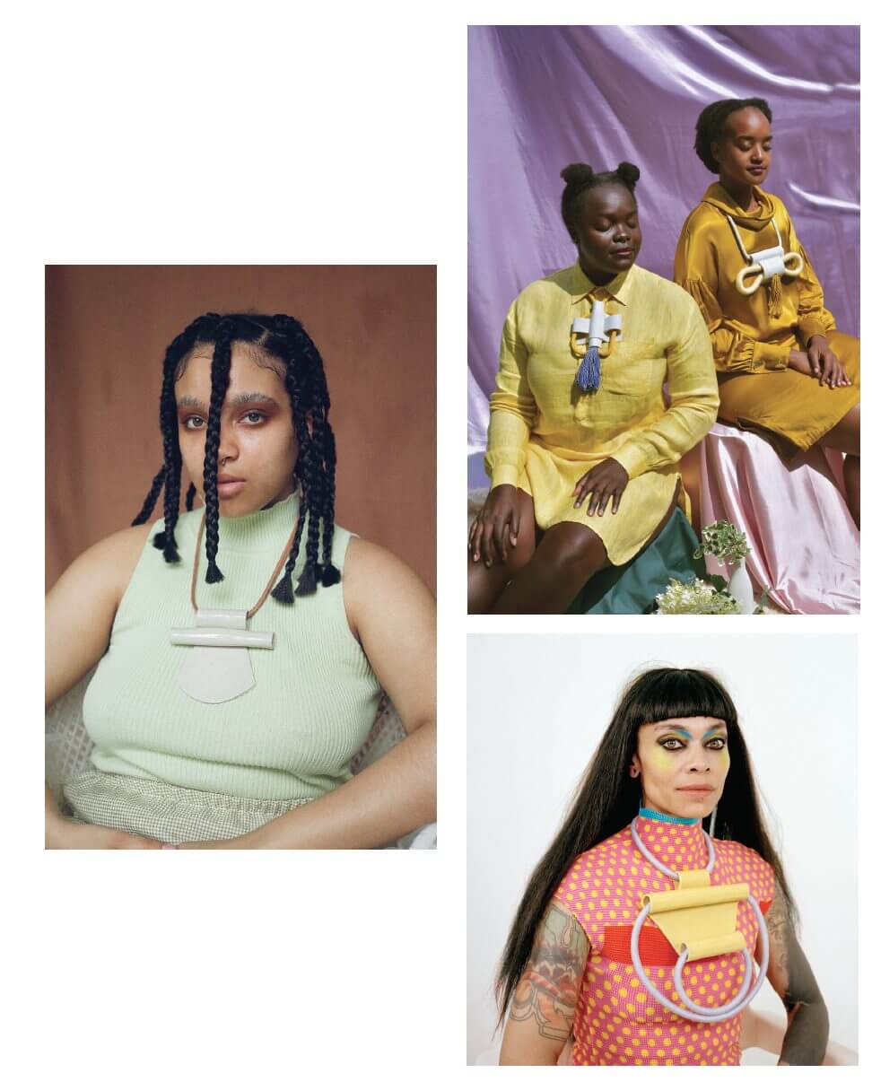 TOP: Photo by Cheryl Hann; Models: Francesca Ekwuyasi and Portia Karegeya LEFT: Photo by Mallory Lowe; Model: Jada BOTTOM: Photo by Brandon Brookbank; Model: Candy Contrera