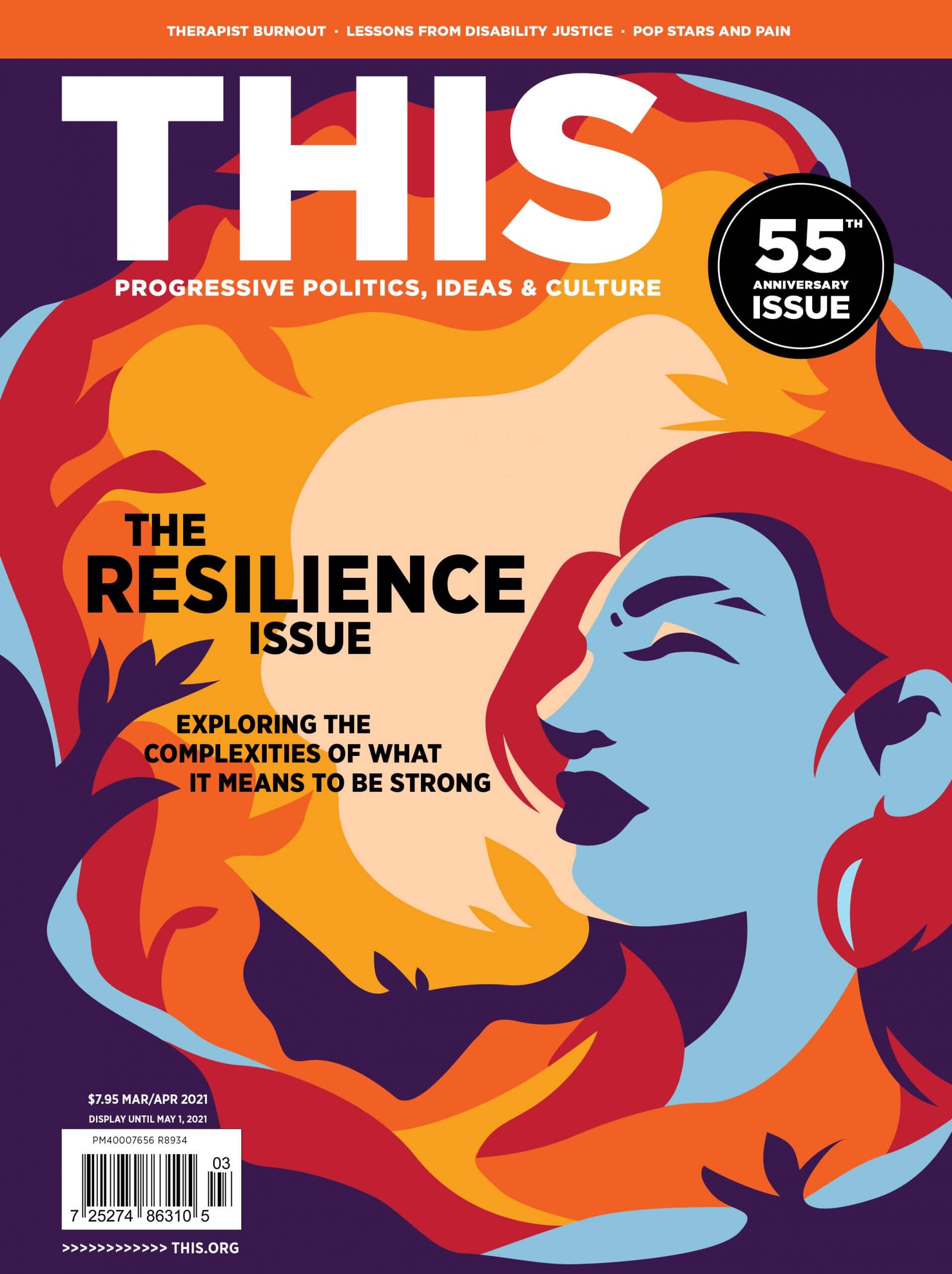 Resilience seemed like an obvious theme to us, but a complex one. This issue marks our 55th anniversary as a publication. As you’ll learn in the timeline in our front section, This started in 1966 as a journal about education; it was one of the first alternative journals in North America. Publishing as an independent not-for-profit magazine takes resilience. We’ve published through changing political landscapes, the start and end of many progressive publications and projects; we’ve published with limited resources and funding delays. But we’ve published with a consistent mandate: to bring you stories and perspectives left out of the mainstream media. We often cover acts of resistance, but much of our regular coverage fits under the umbrella of resilience too.